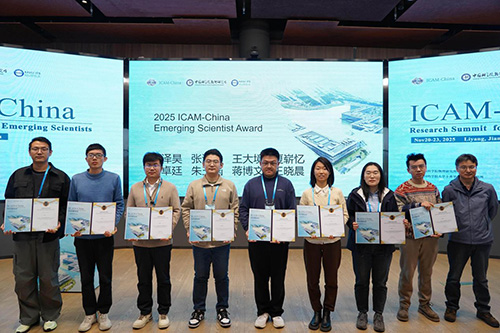 11月23日上午,清华大学董泽昊、北京大学张潇逸、中国科学院物理研究所夏崭忆、北京航空航天大学王大境、南京大学蔡卓廷、西安交通大学蒋博文、大连理工大学王晓晨、国家纳米科学中心朱玉菡凭借精彩报告和突出成果,荣获2025“ICAM-China Emerging Scientist Award”。中国科学院物理研究所李佳恒、宋伯钦、时运豪、王宇荣获物理所“优秀博士后奖”。中国科学院物理研究所副所长胡江平为获奖者颁奖。