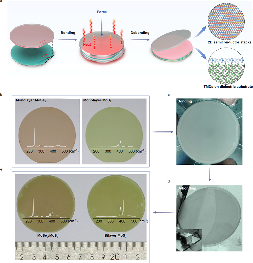 图. 用直接键合-解键合实现晶圆级二维材料的转移。