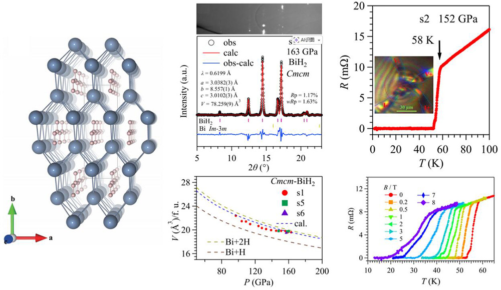 图. 分子型二氢化铋超导体 BiH2的晶体结构和超导转变。