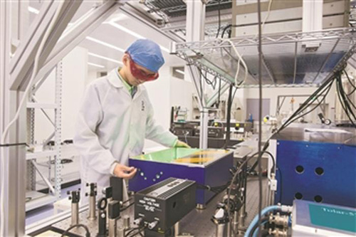 5月24日,在中科院物理研究所怀柔园区综合极端条件实验装置超快光场物性研究系统,科研人员在调试设备。
