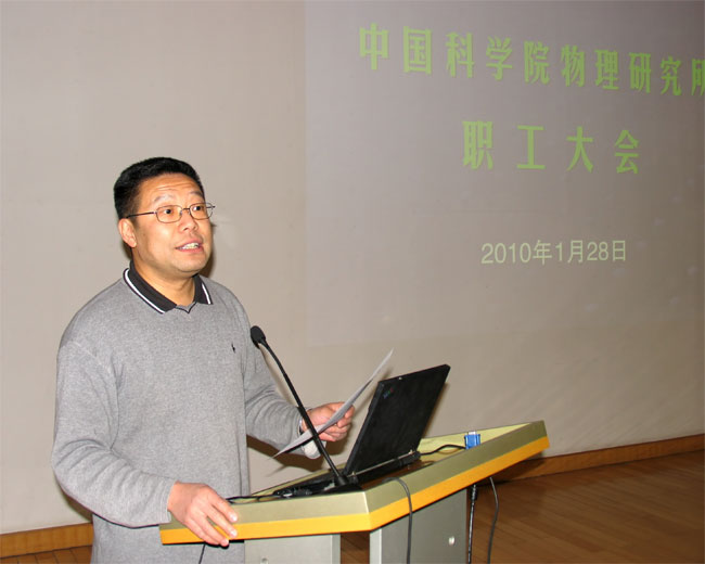 1月28日下午,物理所2009年度全所职工大会在D楼212报告厅召开。所领导班子成员及全所职工、研究生参加会议。大会由冯稷副所长主持。