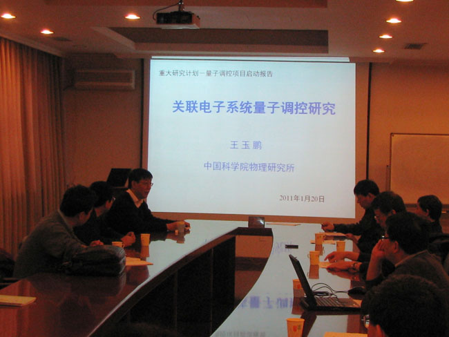 2011年1月20日上午,由王玉鹏研究员担任首席科学家的国家重大科学研究计划2011项目“关联电子系统量子调控研究”在物理所内召开了项目启动会。中国科学院基础局王永祥处长、项目专家组及项目组成员应邀出席了会议。