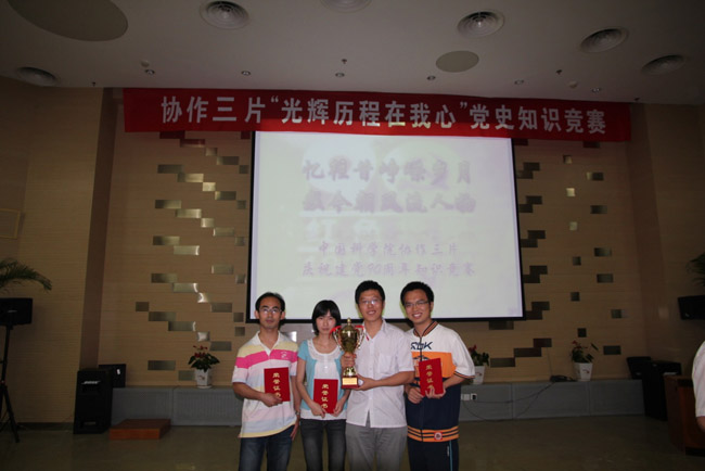 竞赛共分为“争分夺秒”必答题、“眼疾手快”抢答题、“通力协作”共答题、“谁与争锋”风险题四个环节,每个环节都要求各代表队具有扎实的党史知识和出色的临场发挥能力。赛前,物理所代表队做了充分的准备,认真学习了很多关于党史的知识。最终,他们凭借在必答题、共答题环节稳定发挥,抢答题、风险题环节抓住关键机会,从10支代表中脱颖而出,获得第一名,并代表第三协作片参加由京区党委主办的以“凝心聚力促发展,创新争优展风采”为主题的纪念建党90周年知识竞赛活动。