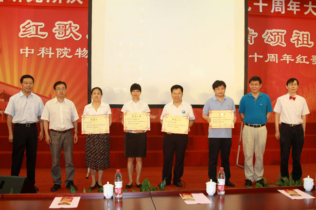 经过红歌会评委会的认真评审,光物理重点实验室代表队、清洁能源实验室代表队、宏理公司代表队荣获特等奖,其余各代表队分别荣获最佳演唱奖、最佳表演奖、最佳人气奖、最佳团队奖。组委会对所有参赛队颁发了优秀组织奖。物理所所领导、所长助理及党委委员分别为各获奖代表队颁发奖杯和证书。