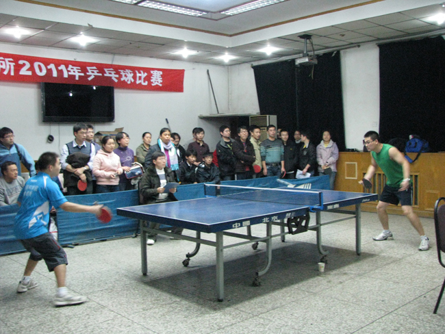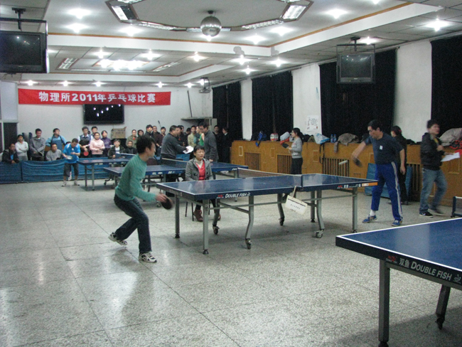 11月19日—12月1日,物理所2011年度乒乓球团体比赛在所工会活动室热火朝天的举行。来自全所14个部门的12支队伍、90多名职工和学生参加了比赛。比赛第一阶段为小组循环赛,第二阶段为淘汰赛,一共进行了19场比赛。