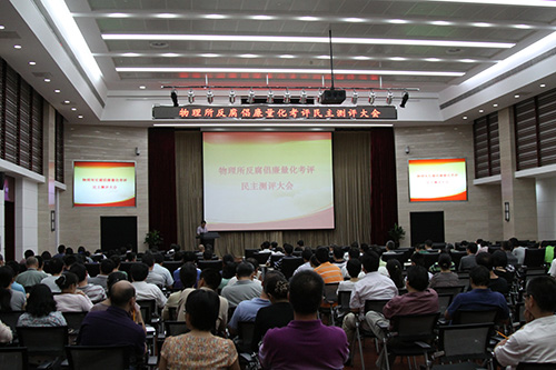6月13日下午,物理所反腐倡廉量化考评民主测评大会在M234报告厅召开。物理所所领导、党委委员、纪委委员、党支部书记、实验室主任、课题组长、管理部门负责人、研究员及副研究员、所属企业负责人、职代会主席团成员等170余人参加民主测评。
