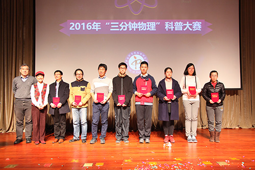 2017年1月16日,“三分钟物理”科普大赛决赛暨颁奖典礼在中科院物理所举行。本次大赛邀请到了科技部、中国科普博览网、果壳网、胡桃夹子工作室、中关村中学、天地生科学文化中心、北京交通大学,以及中科院理化所和物理所等长期活跃在科研和科普第一线的专家担任评委,孙牧书记出席了决赛现场。