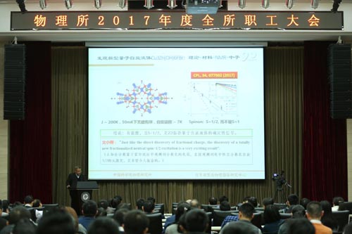 方忠所长指出,2018年是贯彻党的十九大精神的开局之年,同时也适逢物理所建所九十周年,更是推进物理所全面发展的攻坚之年。今年物理所工作的总体思路是继续在党的领导下,以习近平新时代中国特色社会主义思想为指导,以卓越化、国际化、规范化、公益化的制度建设为基础,全力打造物理所“双一流”的标准和“一村三湖”的规划布局,努力将物理所建成国际一流的物质科学研究机构国家研究基地,在产出重大成果,孕育尖端技术等方面为建设科技强国做出更多贡献。最后,方忠所长向大家致以新春祝福,预祝新的一年全所职工身体健康、阖家欢乐。
