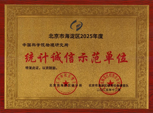 近日,中国科学院物理研究所被授予北京市海淀区2025年度“统计诚信示范单位”称号,获颁荣誉牌匾。