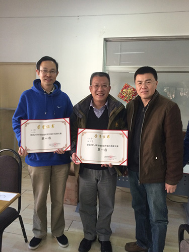 经过上午的三轮积分赛排出了30对选手的名次,前8对选手进入了下午的名次赛。最终方忠、汪卫华获得了第一名;银珊、吕子正获得了第二名;李志远、耿文义获得了第三名。此次大赛的组织者、裁判长施洪钧向获得前三名的选手颁发了名次证书及奖品。