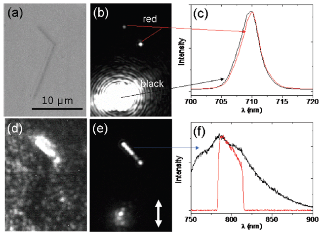 | 图3:银纳米线中传导的等离子激元激发量子点发光。 |