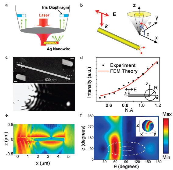 | 图2:银纳米线波导中光的定向发射。 |