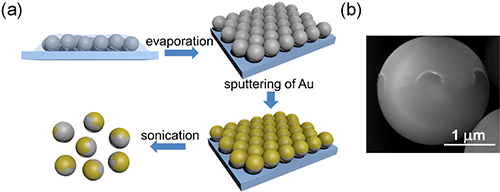| 图1. Janus粒子制备流程图和几何结构SEM图片。 |