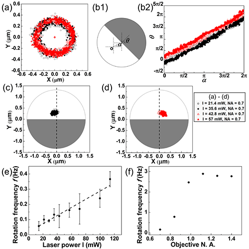 | 图3. Janus粒子在光阱中的自转和公转运动形态参数的观测结果。 |