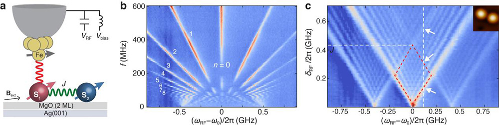 图1. 固体表面单自旋和耦合自旋系统的LZSM量子干涉