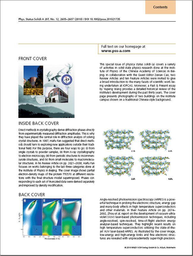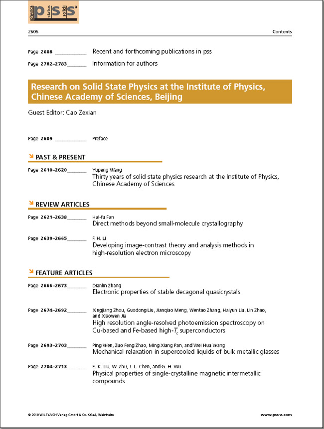 德国杂志《固体物理A辑》(Physica Status Solidi A) 为物理所编辑的专刊于2010年12月8日正式出版。