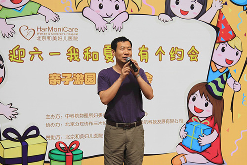 活动开始前,自动化所党委书记王小明、中关村街道计生办黄玉玲、物理所综合处处长魏红祥分别讲话,向前来参加活动的小朋友和家长表示欢迎并致以节日的祝福,希望大家在现场玩的开心。