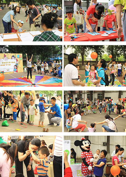 活动游戏区项目丰富多彩,令大家目不暇接。有充满活力的老师伴着音乐跳金宝舞,用简单的英语带着大家做游戏,寓教于乐;有学步儿童的走路比赛,家长抱着宝宝的顶气球比赛;有充满趣味性的手工DIY“欢乐熊猫鱼”,虽然五彩的颜料弄花了孩子们的小手小脸,但最后完成的画作令他们成就感十足。还有串彩珠、套圈、音乐游戏等等,孩子和大人都玩的兴高采烈,乐在其中。