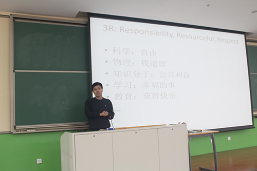 上午十点半,交流会正式开始。首先,张宏伟主任代表研究生部发言,他以自己多年从事研究生教育工作的经验告诫研一新生要珍惜时间,做好从本科生到研究生的角色转换,以更好地适应将来的研究生生活;杨猛老师从物理学院学生主管的层面出发,对物理所的本届学生寄予较高厚望。随后,导师代表孟胜研究员表达了自己对于科学自由追随的态度,阐述了科学精神的内涵与精髓,并积极鼓励同学们在未来的研究生生活中努力拼搏;紧接着,学生代表王跃生博士将自己有趣的科研经验,学生工作历程等方面与在座的师弟师妹们进行了分享,其幽默的谈吐惹得台下阵阵笑声。最后,是此次交流会的问题作答环节,由全体老师对新生提出的关于学业、科研、生活等各方面问题逐一给予详实作答,回答问题的场面十分热烈,掌声、赞许声弥漫着整个教室。