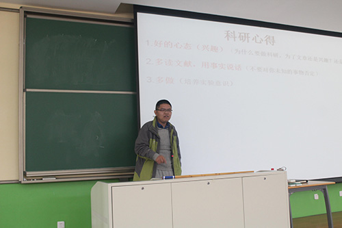 | 学生代表王跃生为大家分享一路走来的科研心得 |