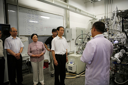 2016年7月12日,全国政协副主席王家瑞率队,全国政协教科文卫体委员会组织部分在京科协界、科技界委员围绕学习贯彻全国科技创新大会精神,就“加强基础研究,推动原始创新”开展界别活动,到物理所进行考察调研。中科院相里斌副院长、科学传播局周德进局长、条件保障与财务局副局长林明炯陪同调研,物理所王玉鹏所长、孙牧书记、方忠副所长、文亚副所长/副书记等出席了活动。