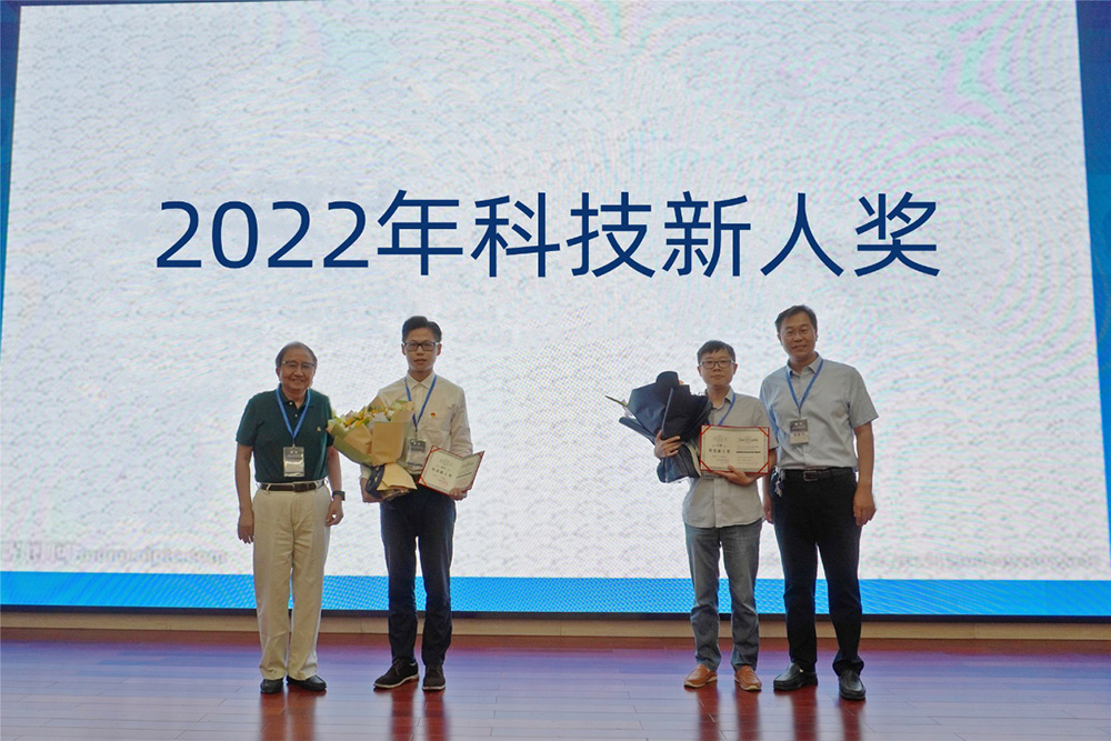 上科大物质学院学术院长张富春、物理所副所长程金光为“物理所科技新人奖”获得者吴凡、万源颁奖