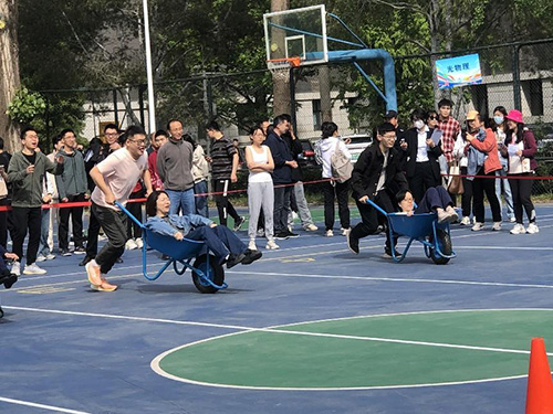 本次运动会共有四个集体项目和一个研究员项目:独轮车运人、摸石头过河、赶猪跑(集体项目和研究员项目)、动感颠鼓。运动场上洋溢着火热的氛围。每位参与者都精力充沛、朝气蓬勃,在展示个人运动水平的同时,又充分体现出团队协作能力。现场欢呼声和加油声此起彼伏,师生们在紧张、有趣的比赛中,赛出了水平、赛出了欢乐、赛出了友谊,在欢声笑语中充分释放工作和学习的压力。