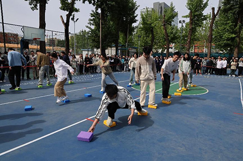 集体项目结束后,有近七百人在足球场上参加了个人自选项目,在完成了跳绳、穿越障碍和足球射门后,领取一盆精美的绿植。至此,2024年五一运动会圆满结束,大家带着欢乐的笑容,轻松的心情迎接即将到来的五一假期。