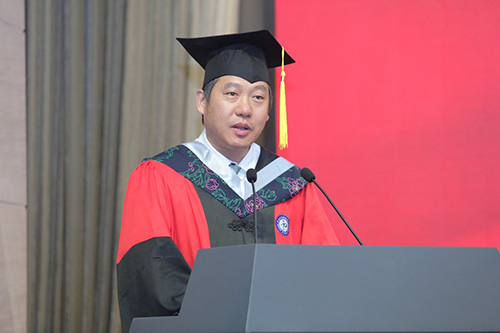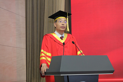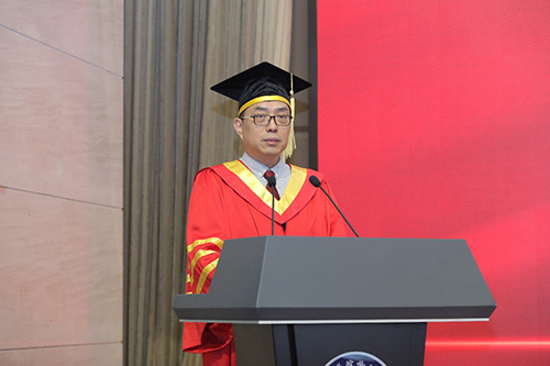 毕业生代表夏一鸣和导师代表张广宇先后发言。夏一鸣首先代表全体毕业生向物理所、导师、同学和父母表达了不尽的感激,他表示在物理所的科研、生活经历教会了他要保持好奇心和培养解决问题的能力。虽然面临告别,但也相信物理所的同学们将带着壮志凌云的梦想和脚踏实地的干劲出发,未来会在新的高峰相遇。张广宇代表全体导师向所有毕业生表达了衷心的祝贺和诚挚的感谢,希望毕业生们能够在今后的工作生活中保持对知识的渴望,勇于创新,保持谦逊,用自身的知识和才能服务社会,为人类的福祉做出贡献。