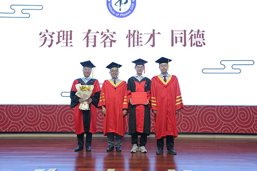 在随后举行的学位授予仪式上,程金光副所长首先宣读了《物理所2024年拟授予学位决定》,研究生部副主任成蒙宣读了毕业生名单。在激扬的乐曲声中和全场师生与来宾的注目下,毕业生依次登台,接受程金光副所长扶正流苏,从李明书记手中接受颁发的毕业证书,并合影留念。